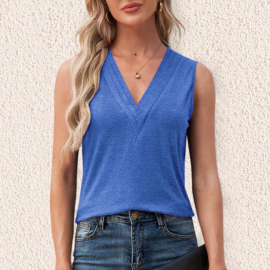 Solid Color Multi-layer Special V-neck Vest T-shirt For Women